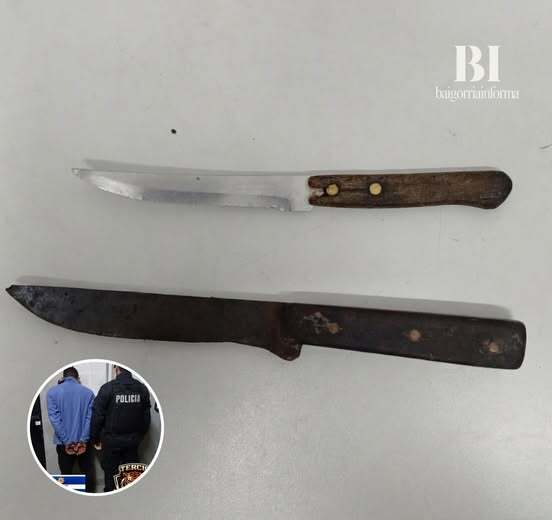 Al arribo del personal policial detuvo al joven y le secuestro dos cuchillos tipo tramontina entre sus prendas según consta en el acta de procedimiento policial